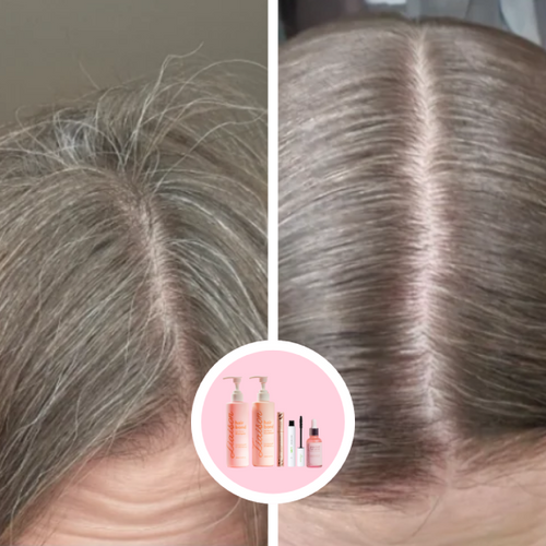 The Anti Gray & Thinning Haircare Kit works by providing your hair and lashes with nutrients that clear built-up toxins and boost blood circulation, activating regrowth and re-pigmentation.