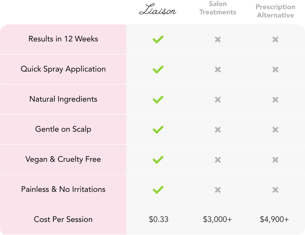 Meet your new hair hero: Liaison’s Hair Root Activator Spray. Designed for women seeking to revive thinning, lackluster strands, our spray goes beyond surface level. It targets hair’s root issues with a powerful blend of biotin, ginseng, and polygonum multiflorum. These ingredients work to naturally block DHT, promote follicle health, and enhance circulation, reversing thinning and promoting healthier hair growth. Whether you’re seeing signs of aging or stressed hair, our formula is crafted to rejuvenate your strands, delivering fuller, more youthful hair in just weeks. Results guaranteed or your money back.