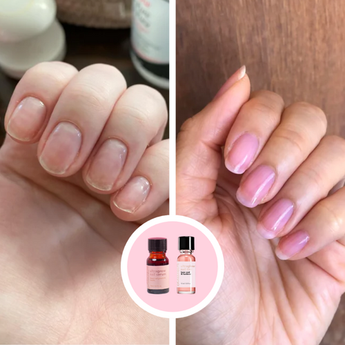 The UltraGrow Nail Serum and UltraGlow Nail Tint Base Coat work together to promote rapid nail growth and provide lasting protection. The serum strengthens and nourishes, while the base coat adds color and shields against damage.