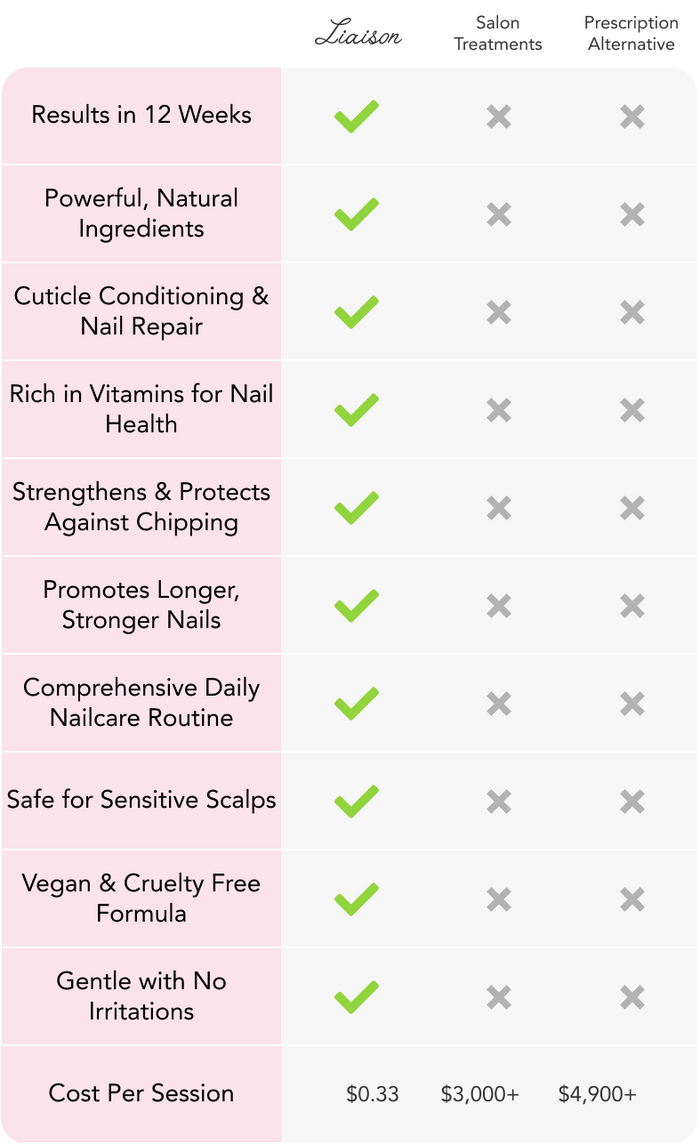I've tried countless products for my brittle nails, but nothing compares to this one from Liaison. My nails are longer and have a healthy glow that I’ve never achieved before. Thank you!